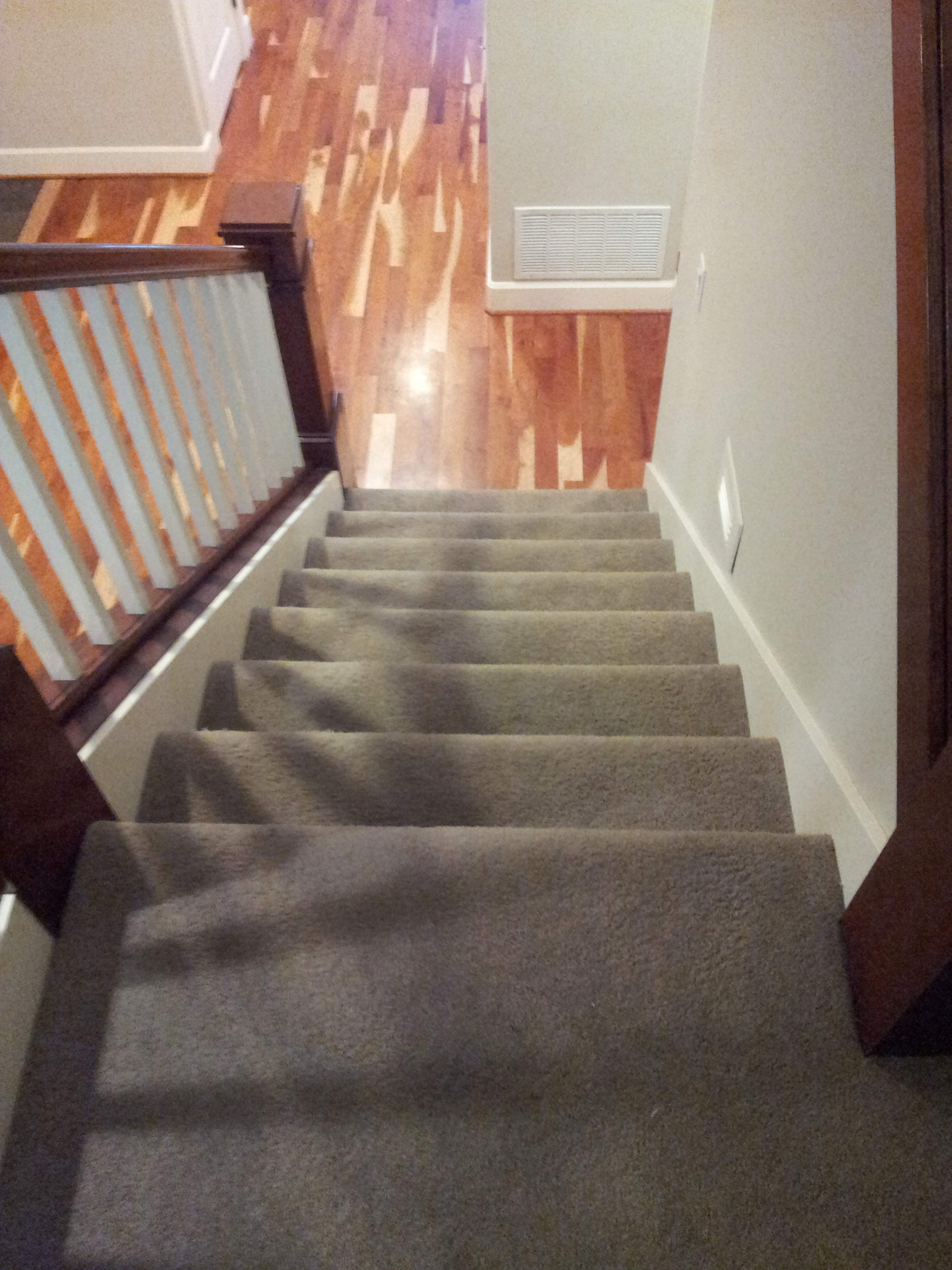 162 Published June 24, 2013 at 2448 × 3264 in Wide Board and Sleek Stain in Kirkland Condo Carpeted stairs and old American Cherry hardwoods